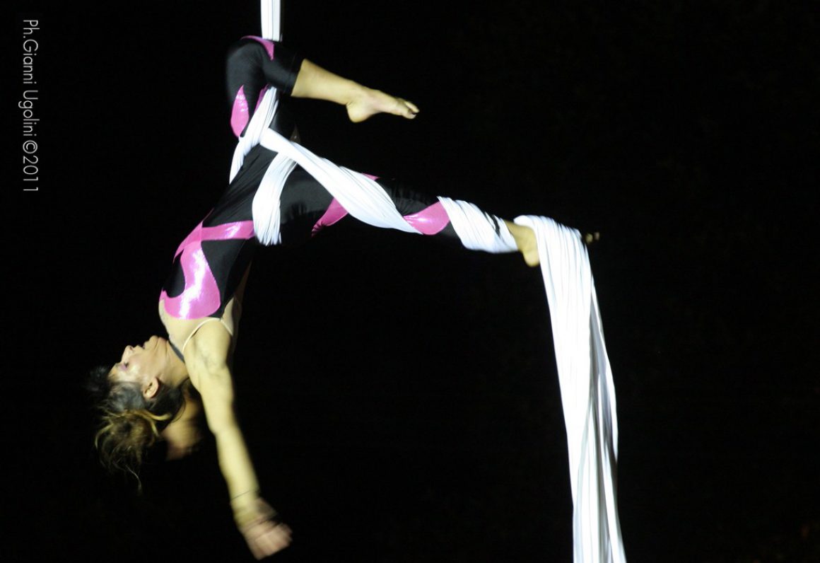 Acrobatica comica, interazioni esilaranti con volontari e pubblico.